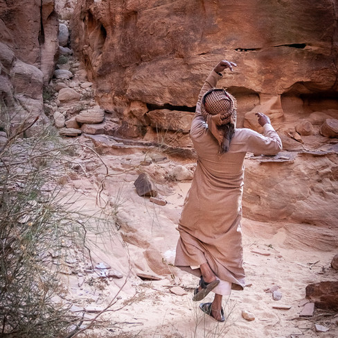 Nous alternons alors entre la voiture qui nous amène aux spots de rando et la marche. Tout est fait pour en mettre plein la vue aux participants. Nous découvrons des sites somptueux et très divers en terme de paysage, passant des étendues de sable, aux roches à franchir par des chemins à la limite de la via ferrata, débouchant sur des promontoires aux vues exceptionnelles. Des vues qu'on peut retrouver dans de nombreux films se déroulant sur la planète mars, Lawrence d'Arabie et Star-wars entre autres. Les midis et les soirs nos guides nous préparent des repas, assez simples, mais nourrissants, copieux et très bons. Toujours du thé et des pâtisseries en veux tu en voilà. Je ne sais pas qui a gagné la bataille du diabète ou du cholestérol.